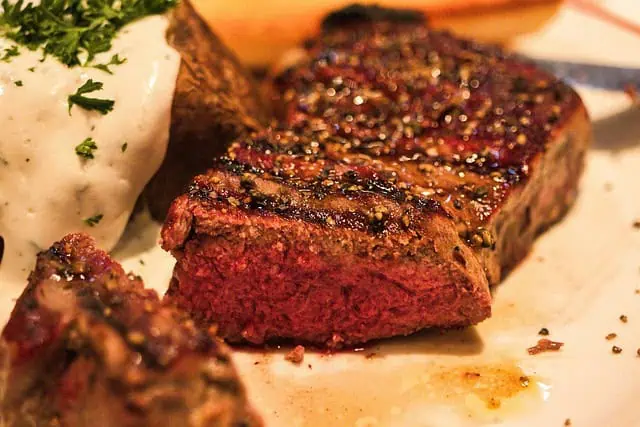 - סטייק עגל עסיסי: מוגש לצד תפוחי אדמה צלויים ורוטב יין אדום.